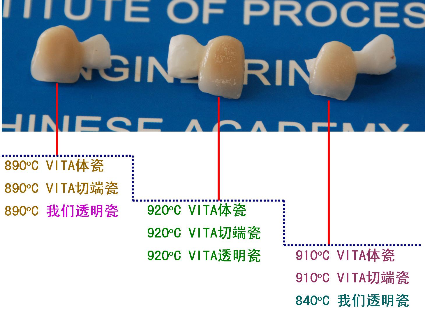 副研究员彭练自主开发的牙科饰面瓷与VITA公司饰面瓷的兼容效果图如下: