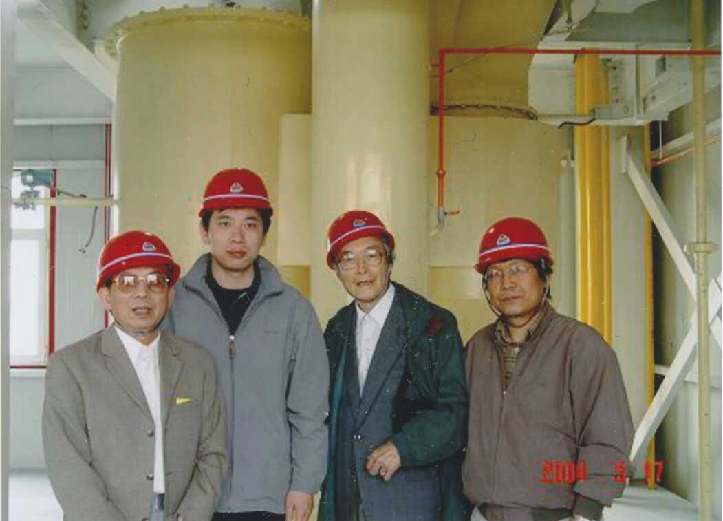 2004年呼和浩特煤系高岭土中试车间(从左至右为:李佑楚、王维、郭慕孙、卢旭晨)