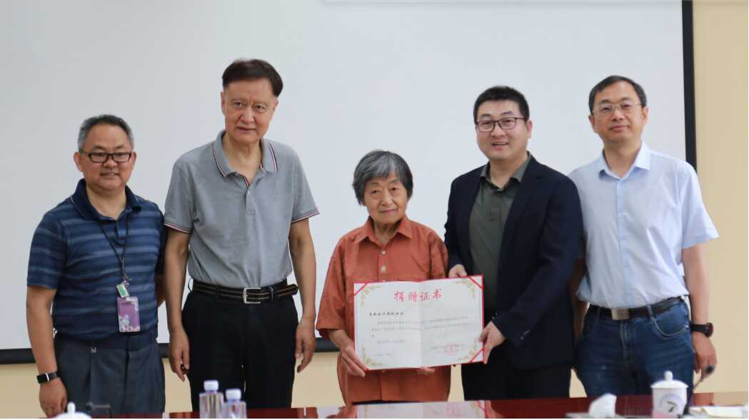 颁发捐赠证书(从左至右为杨海瑞、李静海、沐静秋、赵硕、朱庆山)