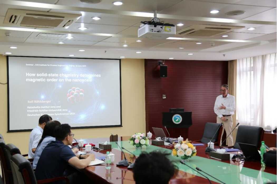 6月16日, 德国耶拿大学教授、穆斯堡尔效应应用国际委员会(IBAME)主席 Ralf Röhlsberger 应邀访问过程工程所。会议由过程工程所党委书记、副所长朱庆山主持,研究所相关科研人员及学生代表等参加会议。