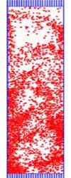 课题组对复杂系统的非平衡特性和多尺度结构提出了独到的理论【李静海专著】 ,因此对现有宏观模拟方法存在的问题和微观模拟方法的进展给予了长期的关注,很早探讨了新兴的粒子方法对处理此类问题的优势,并于1993年在国际上率先用自行提出的拟颗粒模型进行了流态化系统的粒子模拟(见图1)。1996年初步发表【葛蔚CFB5】后即得到了国际评论期刊的充分肯定。近年来此方法得到进一步发展(见图1) 【葛蔚CES2003,葛蔚CSB2003】,国际著名化工杂志的审稿意见认为它将颗粒流体系统模拟的前沿向前推进了显著的一步。