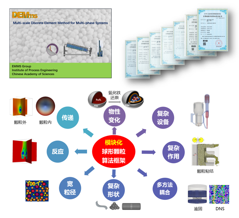 基于原创的介科学理论,突破复杂颗粒体系粗粒化、大规模异构并行计算、反应传递多过程耦合等难题,自主研制出多相系统多尺度离散模拟软件DEMms。与国外竞品ANSYS Fluent相比,颗粒计算的规模高两个量级以上,计算速度快一个量级以上,可更精确计算颗粒间受力,在化工、冶金、医药等领域工程设计与优化应用测试中表现出良好适用性。