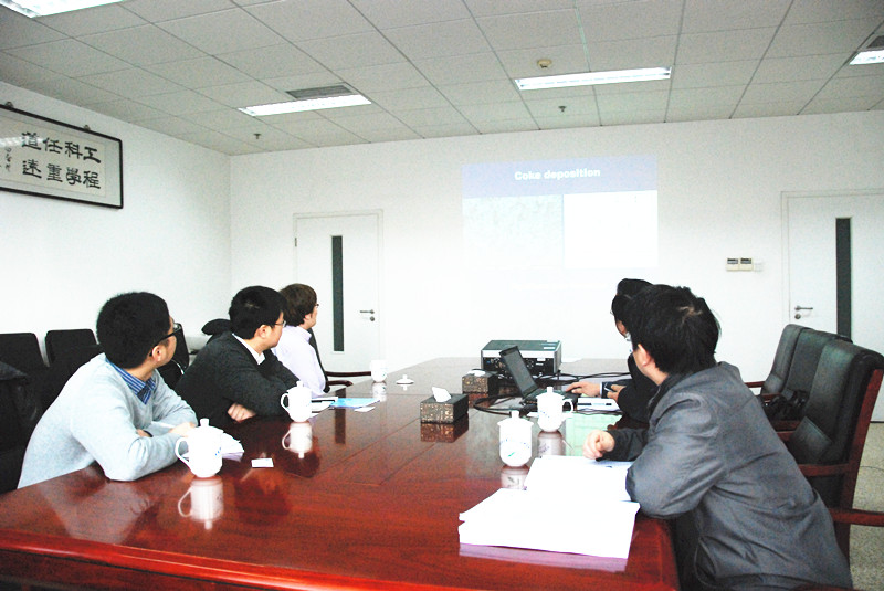 在会上,朱庆山研究员介绍了课题组在磁场流化床理论模拟、磁场流化床甲烷重整和磁场流化床甲烷化工艺等方面的工作,阐述了磁场流态化的优越性和可行性,也对课题组的研究领域、研究方向、科研人员组成及取得的科研成果等进行了介绍。同时,朱庆山研究员对苏珊娜博士提出的一些问题一一解答,相互交流。