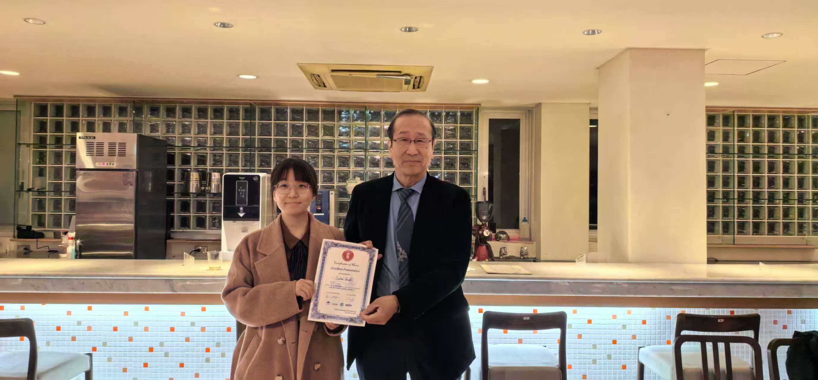 北川进教授为助理研究员郭家惠颁发“优秀报告奖”