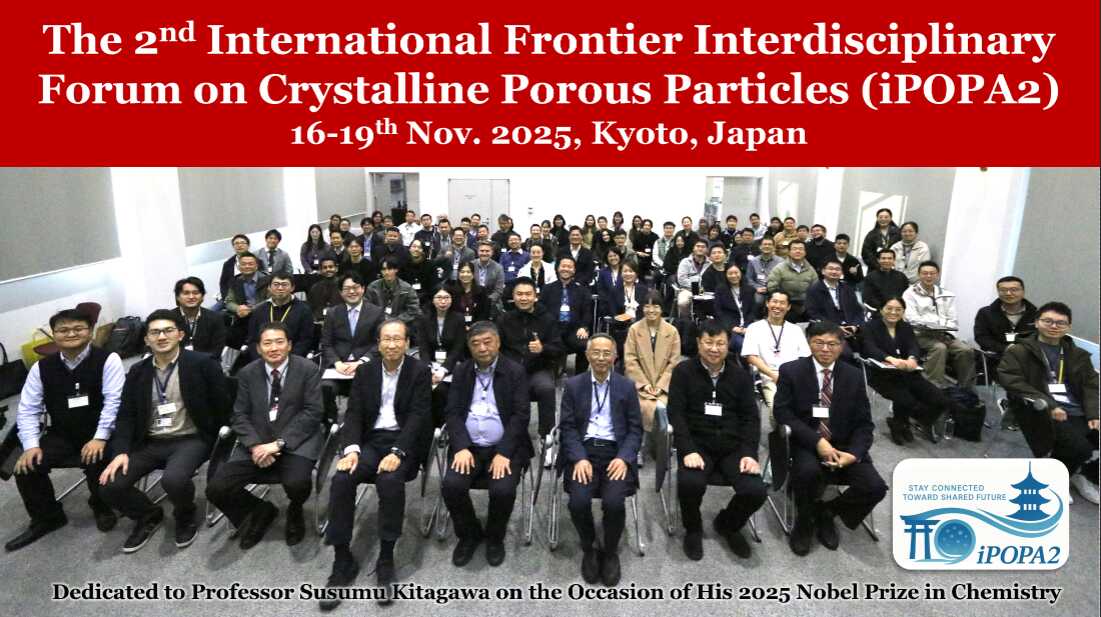 2025年11月17日–18日,由中国颗粒学会主办、日本京都大学承办、中国科学院过程工程研究所介科学与工程全国重点实验室(以下简称实验室)和大阪公立大学协办的第二届国际晶态多孔颗粒前沿交叉论坛(International Frontier Interdisciplinary Forum on Crystalline Porous Particles,IPOPA2)在京都大学高等研究院物质-细胞综合研究所(WPI-iCeMS)盛大举行。本届大会由2025年诺贝尔化学奖获得者、日本学士院院士、京都大学特别教授Susumu Kitagawa(北川进)以及中国颗粒学会理事长、实验室学术委员会委员、中国科学院过程工程研究所研究员陈运法担任主席。实验室十余名师生参会,完成1个口头报告和8个墙报展示。